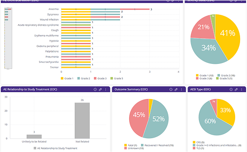 The need to view data across trials (monitory a specific IP) and compounds. To monitor patient safety through adverse events, monitoring patient response, monitoring primary and secondary end points. Not all studies fit conventional templates. For unique trials requiring customized data visualization, BioGRID offers flexible, dynamic dashboard creation.